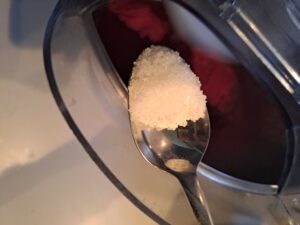 – Beim Verarbeiten von Rohnen (Rote Beete) empfehle ich, immer Handschuhe zu tragen und auch auf der Arbeitsfläche vorsichtig zu arbeiten, denn die Röte ist sehr schwer wieder weg zu bekommen.