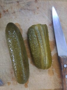 Zum Spargel gehört unbedingt eine Sauce. Für meine persönliche, abgeänderte Variante der Bozner Sauce die Essiggurke in sehr kleine Würfelchen schneiden und in Küchenkrepp die darin enthaltene Flüssigkeit ausdrücken. Zwei Eier für 6 Minuten hart kochen, in kaltem Wasser schnell abkühlen und schälen. Dann nur das Eiweiß ebenfalls sehr klein hacken und zur Essiggurke mischen. Den kleingehackten Schnittlauch und die Mayonnaise einrühren, evtl. mit Salz und Pfeffer würzen und fertig ist meine Spargelsauce.